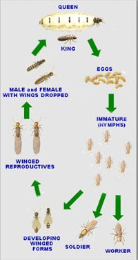 Due to their wood-eating habits, many termite species can greatly affect unprotected buildings and other structures.